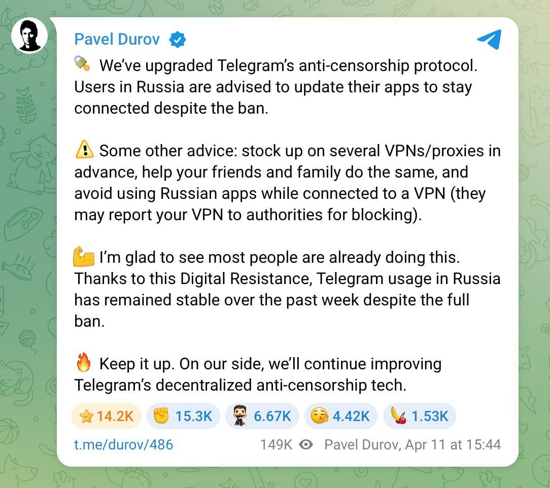 Дуров попросил всех обновить приложение так как это поможет улучшить связь. В настоящее время мониторинговые ресурсы сообщают что ситуация с "деградацией" телеграм движется по экспоненте - жалоб все больше, а связь все хуже.