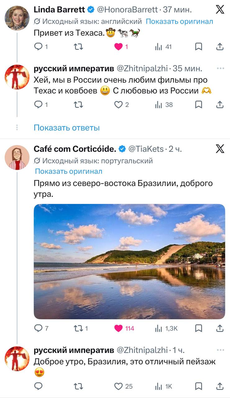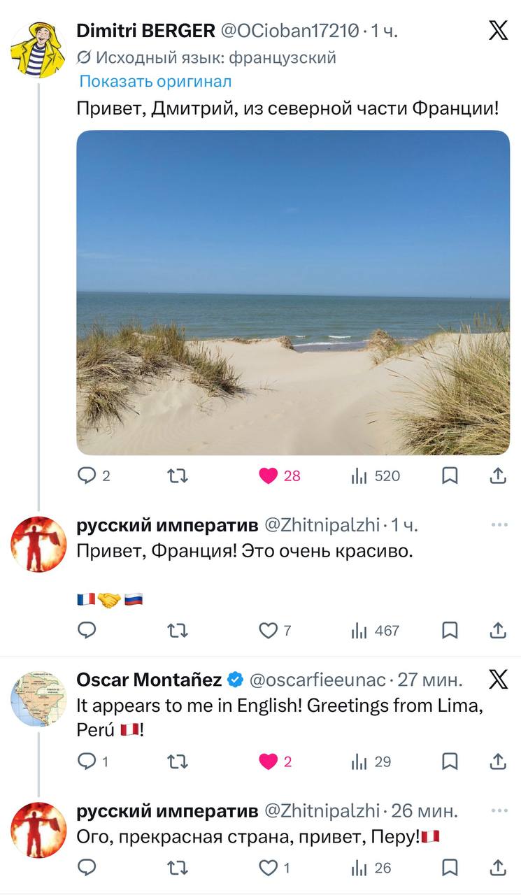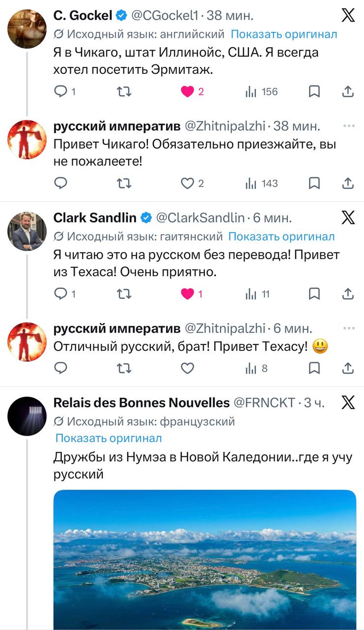 Илон Маск в запрещенной социальной сети твитер (Х) построил новый Вавилон. Он ввёл автоматический перевод всех твитов на твой выбранный язык и заменил алгоритмы показов, вместо того, чтобы как раньше - твиты показывались только твоим подписчикам и залетали максимум на малую часть Восточной Европы, теперь твиты улетают по всему миру.