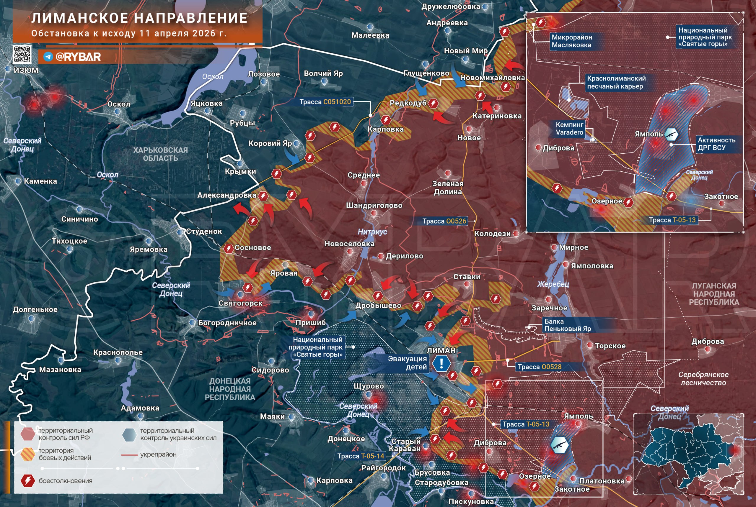 На Лиманском направлении украинские формирования пітались улучшить свое тактическое положение в лесах у Ямполя и Лимана, пользуясь разреженностью российских позиций.