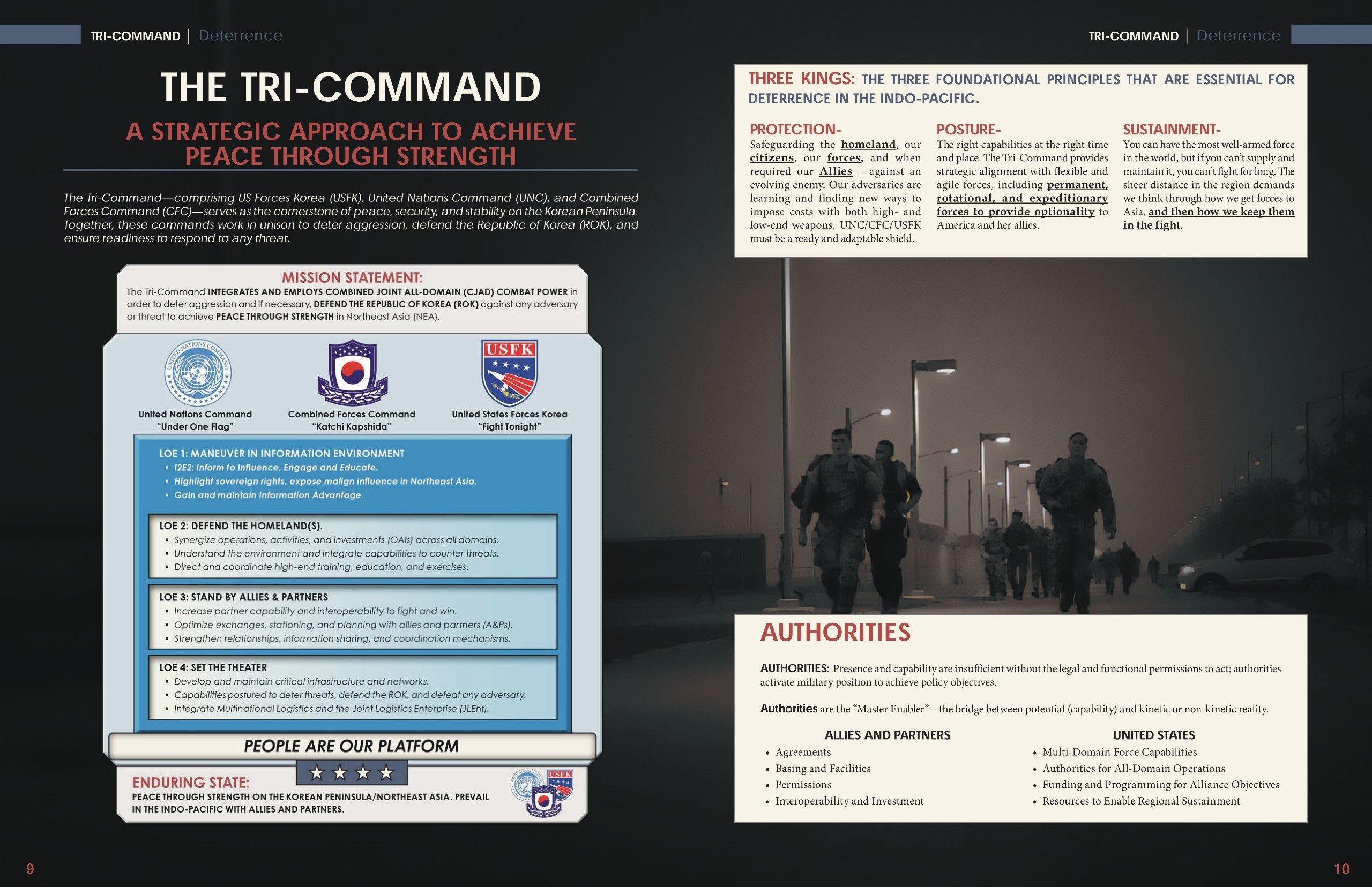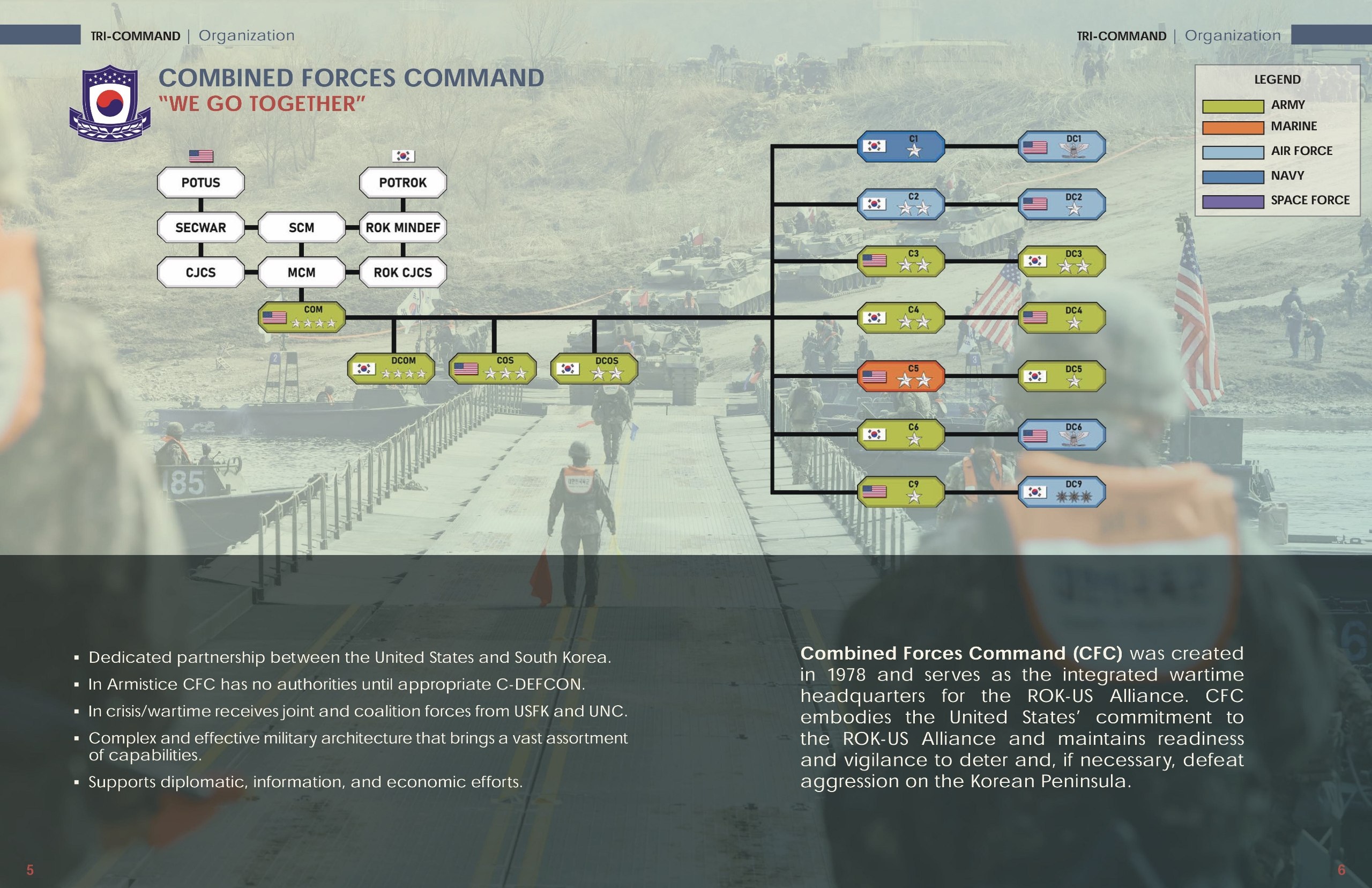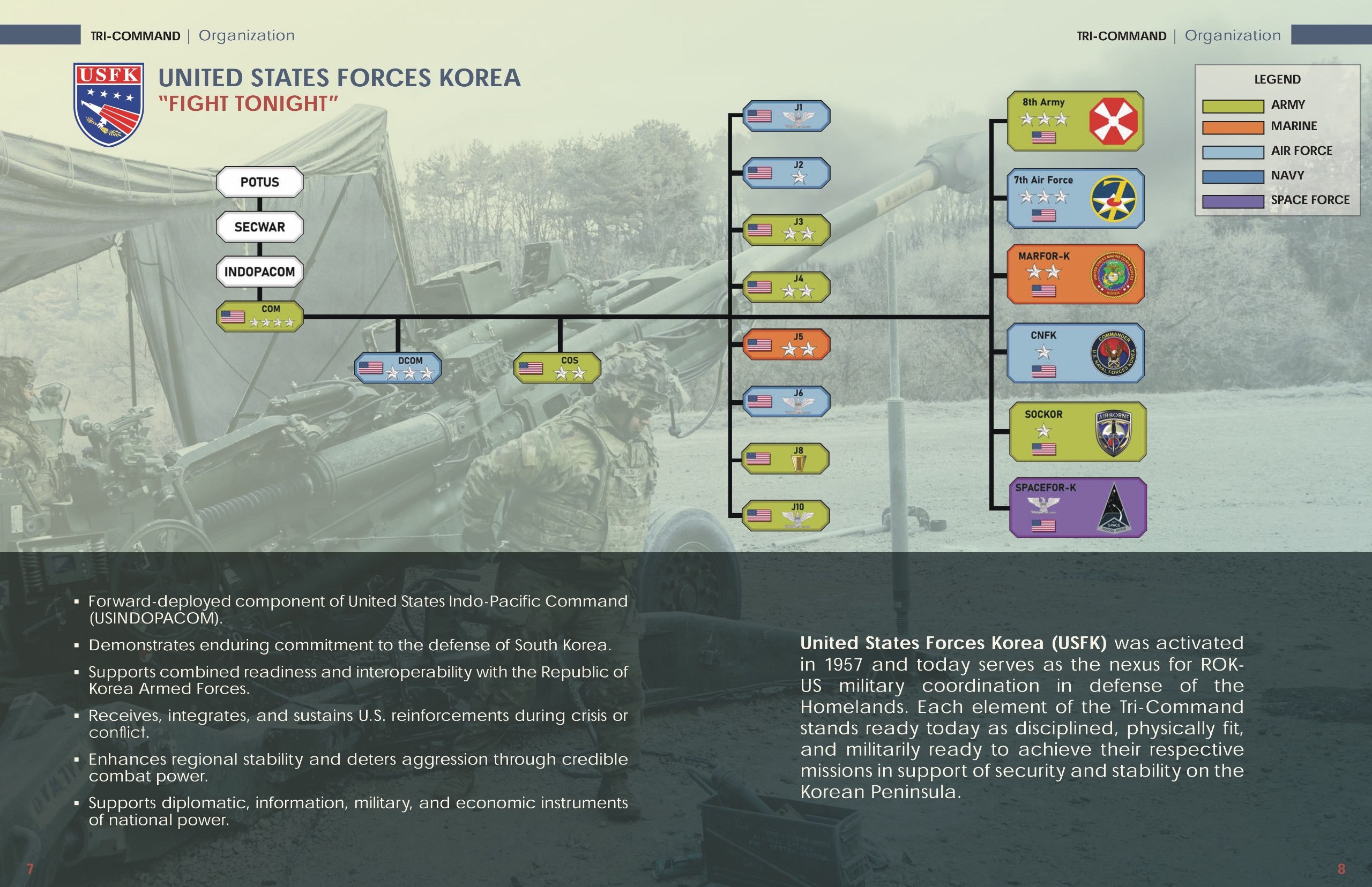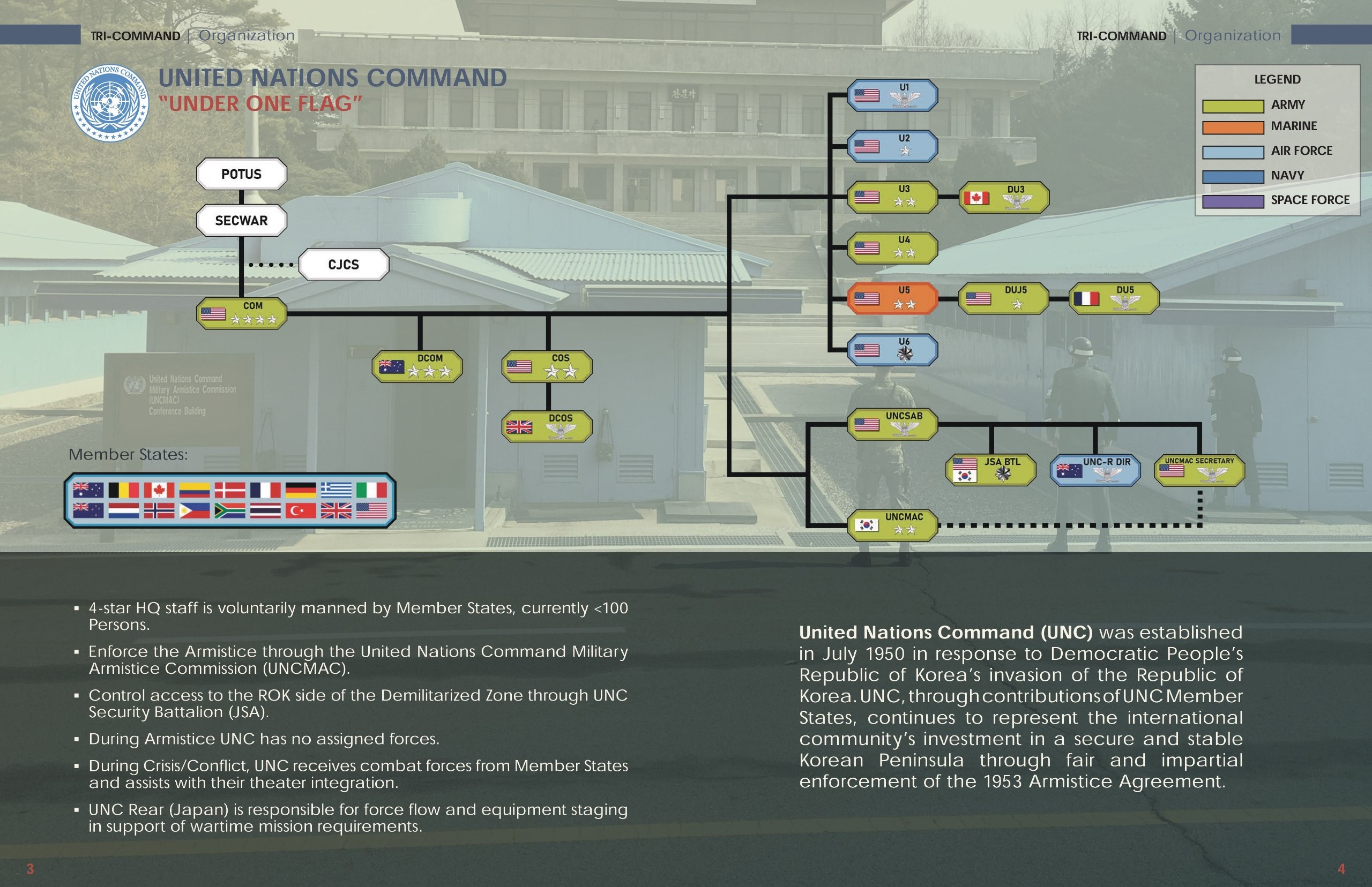 Организационная структура, стратегические цели и задачи американских войск на Корейском полуострове: командование ООН (UNC), командование совместных сил (CFC), командование ВС США в Республике Корея (USFK).