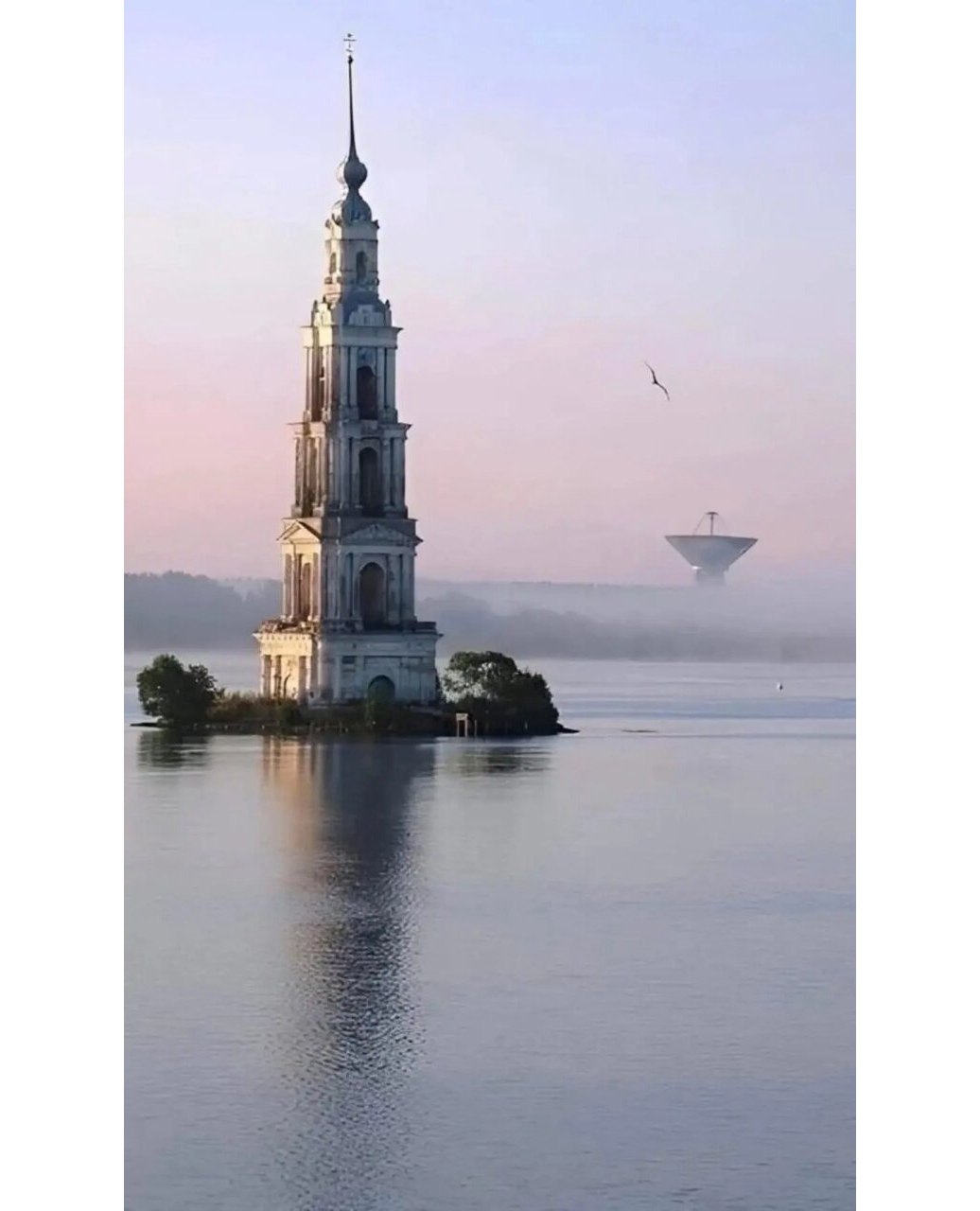 Тверская область. Калязин. Старая церковь и современный телескоп.