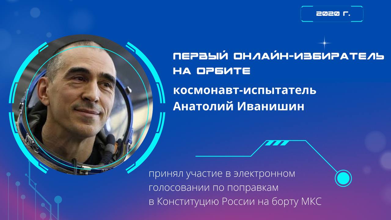 В 2020 году на орбите появился первый онлайн-избиратель, космонавт-испытатель Анатолий Иванишин, который принял участие в электронном голосовании по поправкам в Конституцию России, находясь на борту МКС.