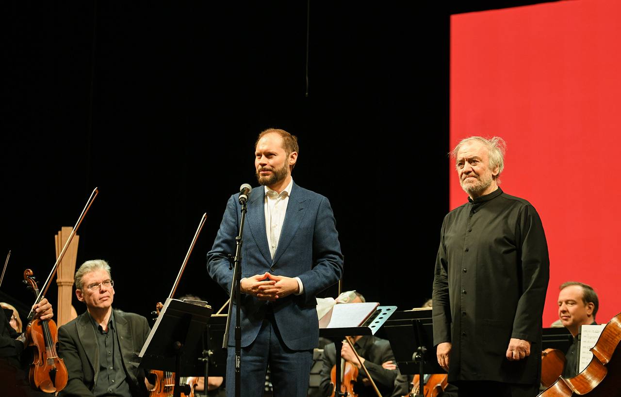 Перед началом концерта руководитель региона поздравил Валерия Гергиева со Светлым Христовым Воскресением, обсудил с народным артистом РФ развитие культурных площадок Верхневолжья.