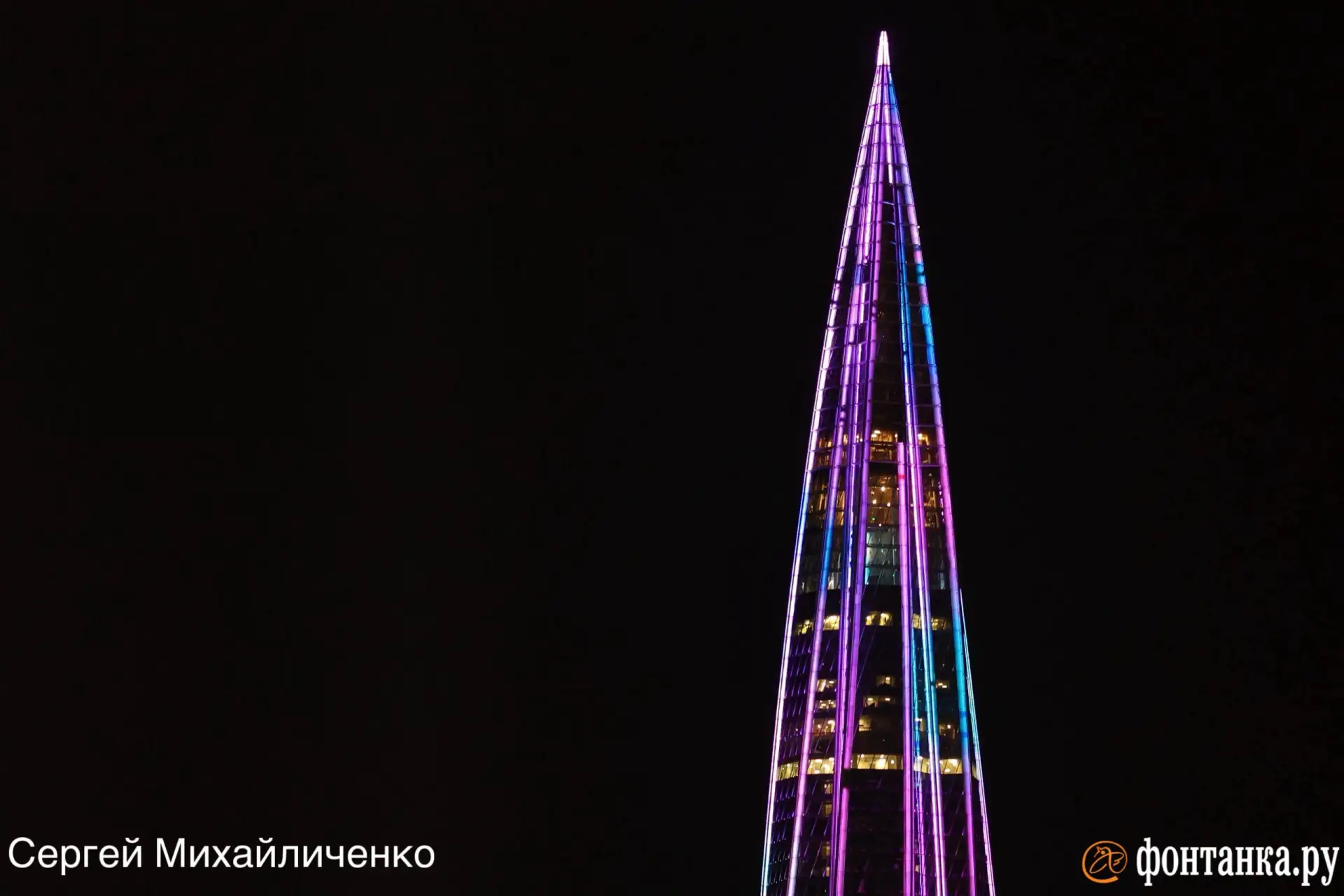 Лахта Центр показывает космос и поздравляет петербуржцев с Днем космонавтики: праздничная фиолетовая подсветка будет сиять до 6 утра. Накануне башня тоже светилась необычно — в честь Пасхи.