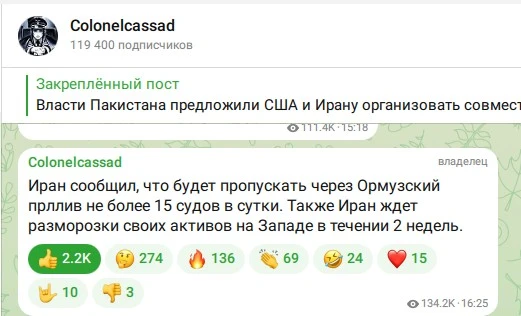 Война на Ближнем Востоке (на утро 13.04.26): двойная блокада Ормузского пролива…Трамп объявил блокаду Ормузского пролива. Через него теперь, по его словам, не смогут спокойно выходить суде заплатившие Ирану по 2 млн.$. А еще те, кто грузился...