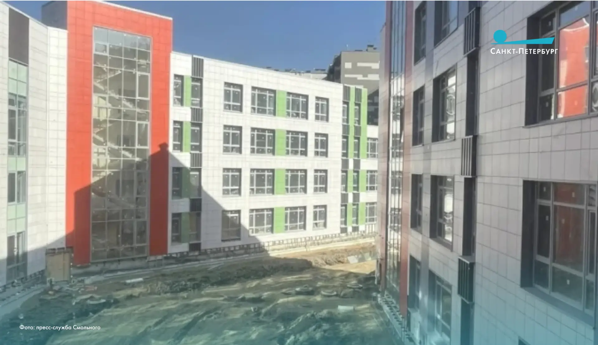Строительная готовность объекта уже достигла 77%. Ежедневно на площадке работают 74 человека. Школа будет рассчитана на 1375 мест, она расположена по адресу: Пискарёвский проспект, участок 1 (северо-западнее дома №159, корпус 7).