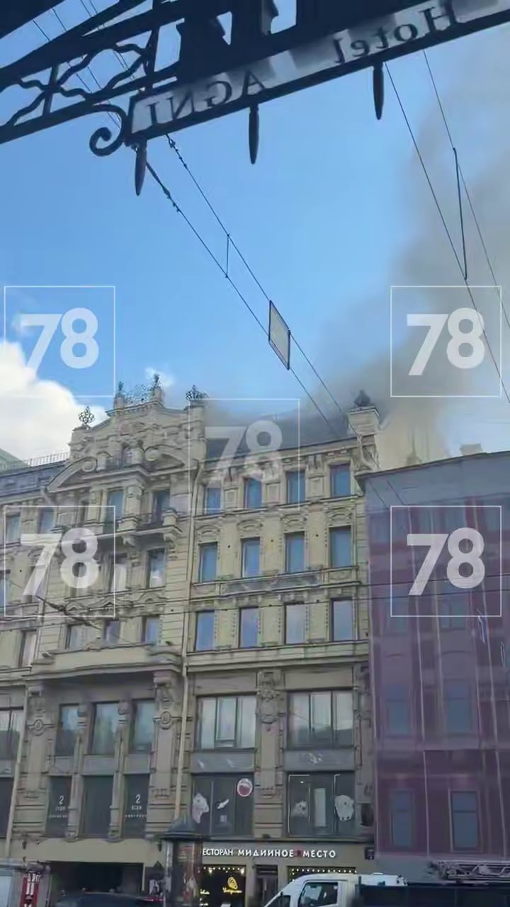 Тушение чердака здания на Невском продолжается. По информации , пожарным пока не удалось локализовать возгорание.