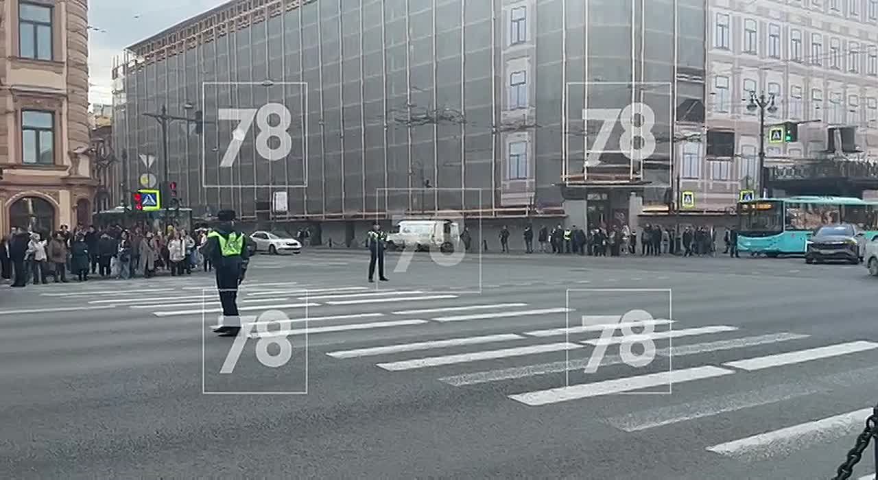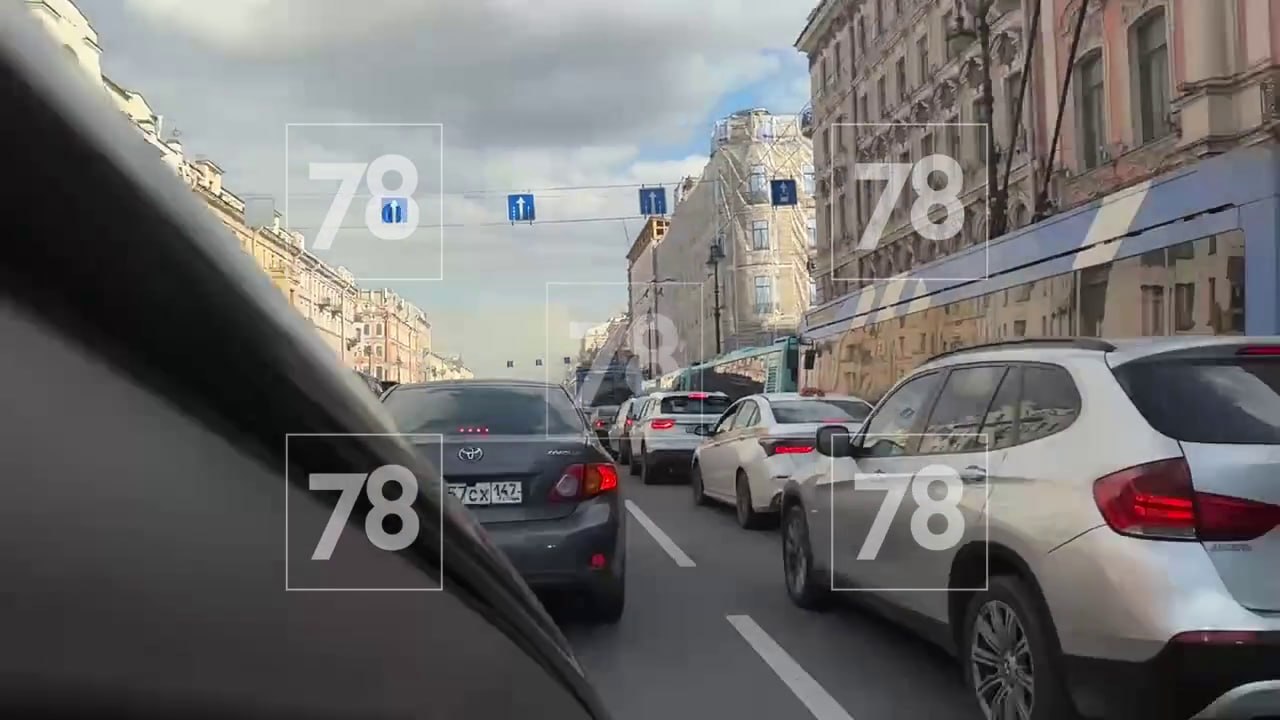 Невский проспект встал в глухую пробку — из-за пожара в доходном доме Блокка полиция перекрыла дорогу.