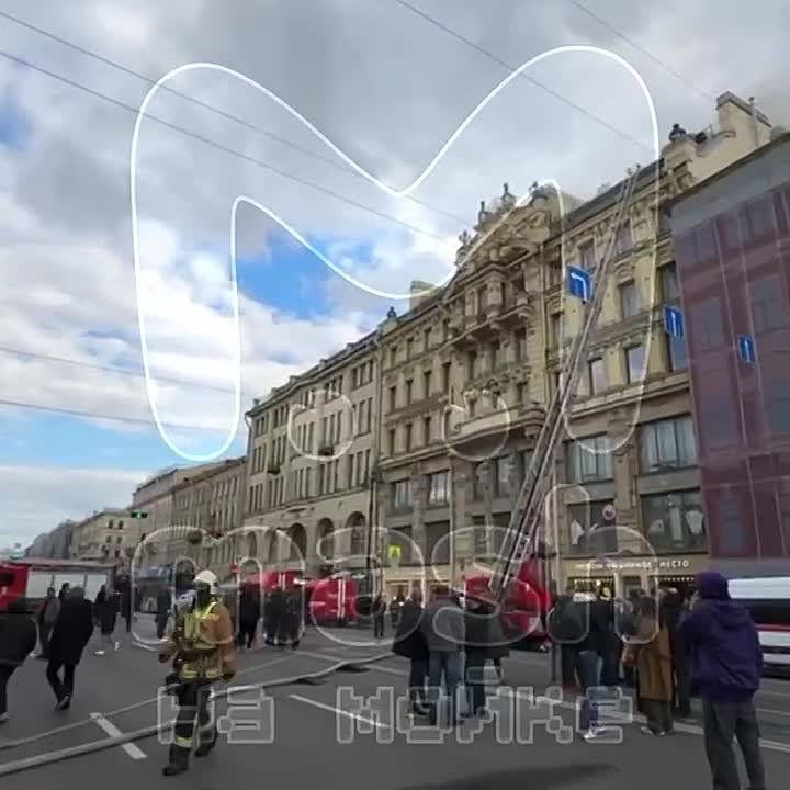 Невский проспект перекрыли на время тушения пожара в историческом доме — горят 600 квадратов на чердаке.