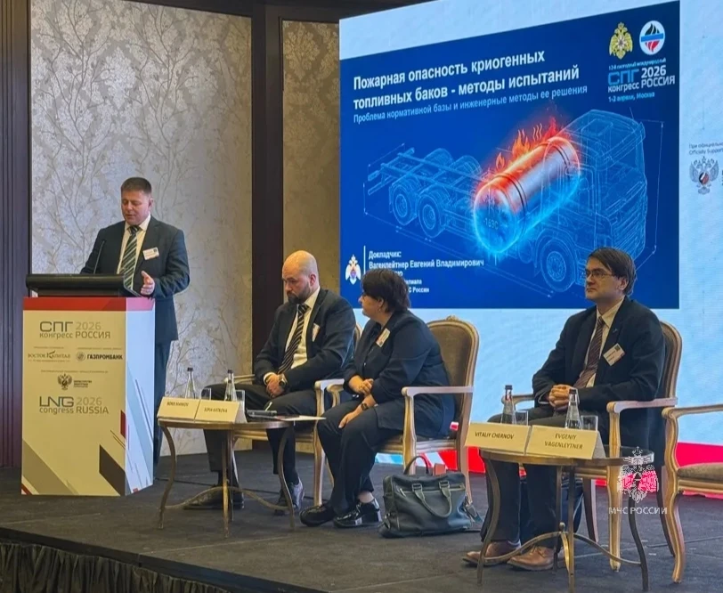 Начальник научно-исследовательского отдела Оренбургского филиала ВНИИПО МЧС России Евгений Вагенлейтнер осветил ключевую проблему проведения испытаний топливных баков транспортных средств работающих на СПГ, заключающуюся в правовой (юридической) коллизии, при которой топливные криогенные баки для СПГ фактически находятся в «серой зоне» технического регулирования. Методы испытаний, обязательные для сертификации компонентов, в обязательном перечне отсутствуют. Данная коллизия — техническая ошибка в Правилах ЕЭК ООН N 110, на которые ссылается технический регламент 018/2011 «О безопасности колесных транспортных средств» — создаёт критический риск для реализации стратегии развития рынка газомоторного топлива. В докладе озвучена важность устранения данных противоречий для создания эффективной и безопасной транспортно-логистической инфраструктуры.