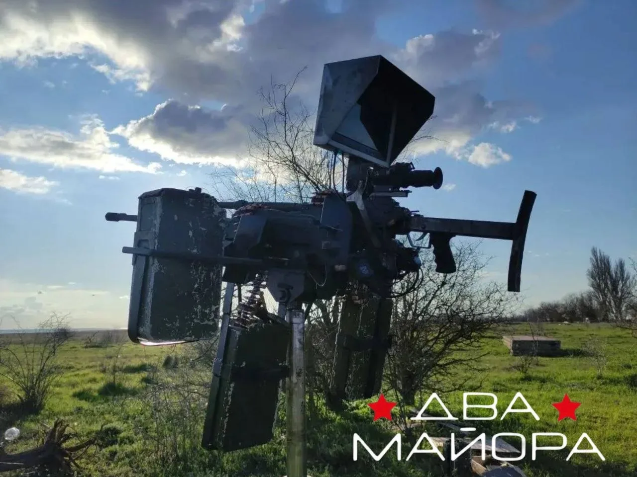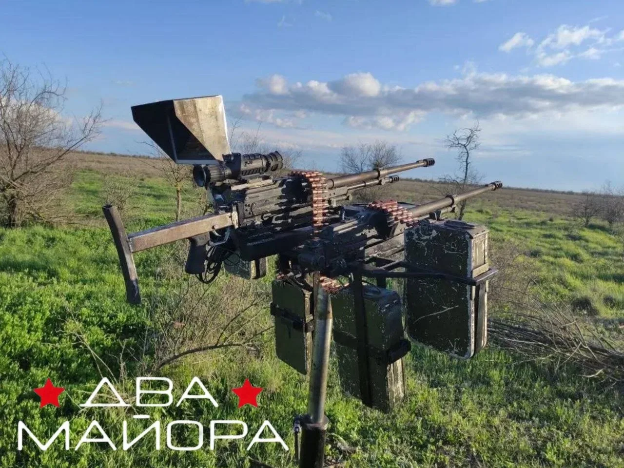 Пара ПКТ с тепловизором, доработано самодельным прикладом и инициатором спуска, а куча коробов - для быстрой замены лент. Ночное прицеливание и повышенная кучность огня обеспечены. Молодцы!