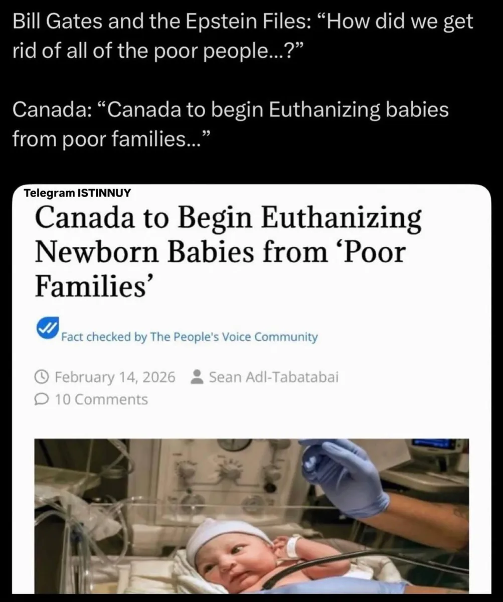 Власти Канады работают над законом, согласно которому будет разрешено проводить эвтаназию младенцам, родившимся в бедных семьях или страдающим от сопутствующих заболеваний.