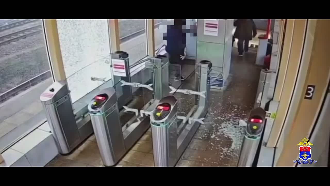 Эффектный выход: мужчина с ноги вынес стеклянную дверь-турникет на ж/д станции Павловск