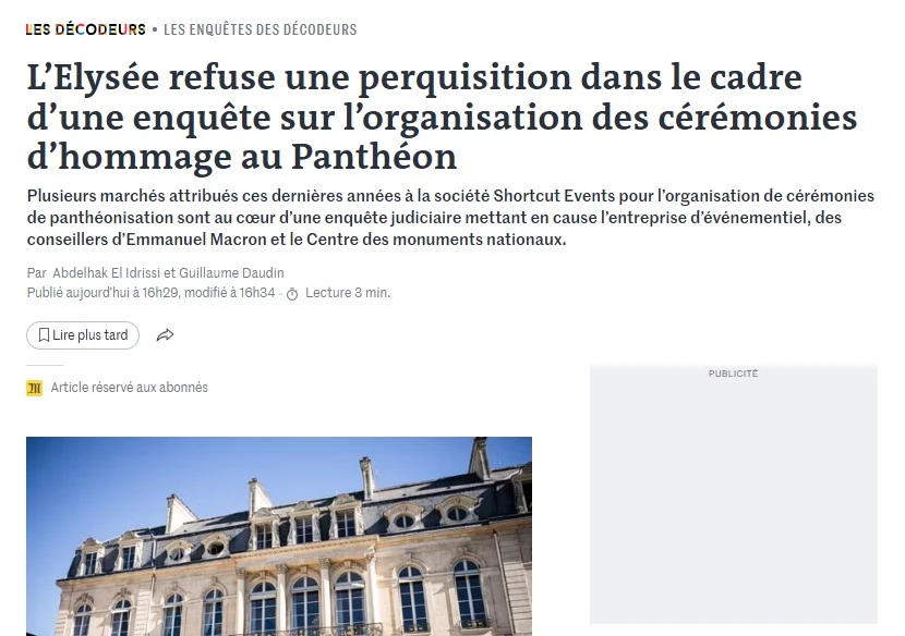 ‘Полиция хотела провести обыски в Елисейском дворце в рамках расследования дела о коррупции, но их не пустили, сославшись на 67 статью Конституции, которая гарантирует неприкосновенность помещений, относящихся к администрации президента’ – Le Monde