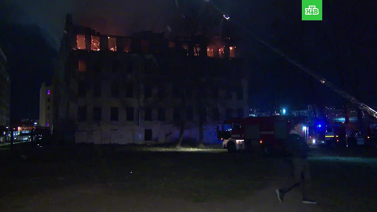 Более семи часов пожарные тушили огонь в расселенном и заброшенном доме на проспекте Обуховской обороны, 42.