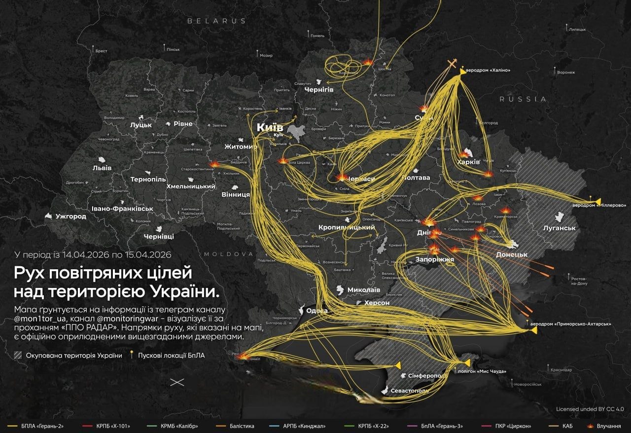 Направление и квардаты прилётов Гераней ночью и утром по версии противника