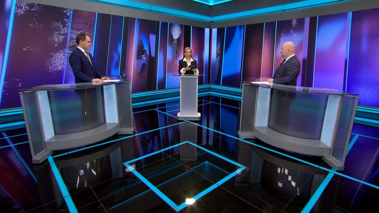 На вопросы ведущей Лидии Виэльбы ответили: председатель Комитета по промышленной политике, инновациям и торговле Санкт-Петербурга Александр Ситов и генеральный директор компании-производителя высокотехнологичного оборудования Дмитрий Васильев.