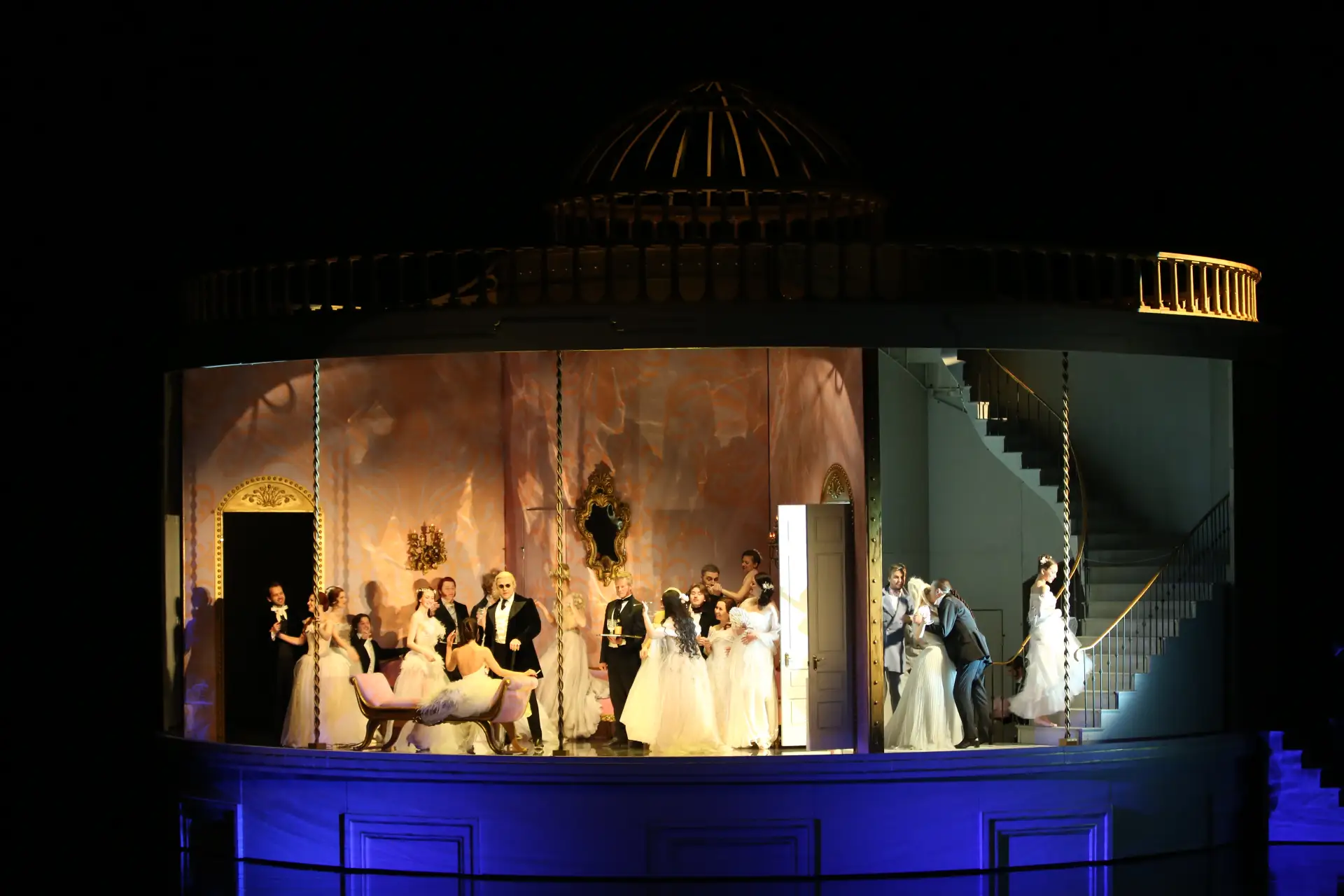 Вопрос: главным визуальным элементом в постановке Клаудии Шолти в Мариинском театре стала пёстрая карусель — метафора скоротечности времени. А какая ещё конструкция появляется в одной из сцен, символизируя роскошную, но несвободную жизнь Виолетты?