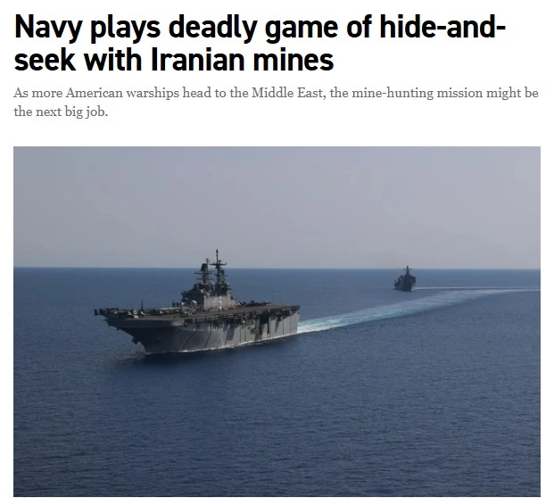 ‘Военно-морской флот США играет в смертельную игру в прятки с иранскими минами’ – Politico сообщает, что Иран может бесконечно минировать пролив.