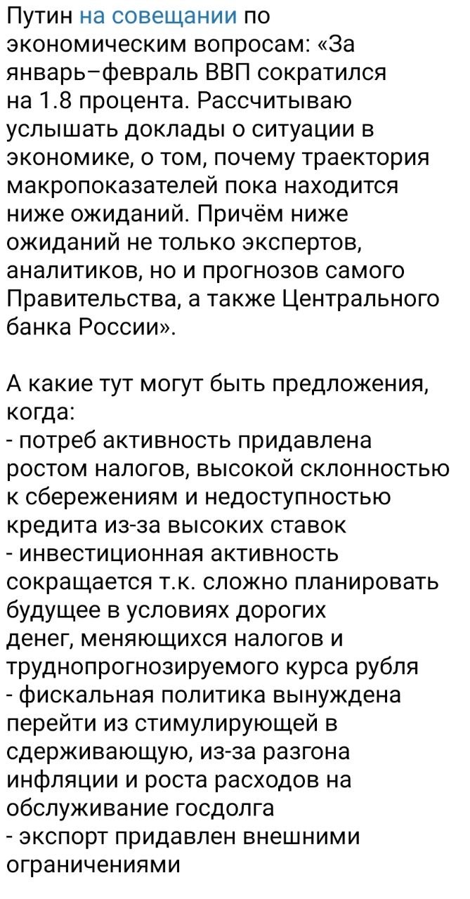 Или сложно изначально догадаться, что блокировка интернета, подкосит множество бизнесов, завязанных на сеть. И это не пара десятков тысяч человек на страну, а несколько миллионов, как недавно с удивлением узнал какой то народный избранник. И что попытка выпускать отечественные автомобили, имея широкую номенклатуру изделий при таком маленьком отечественном рынке, затея обречённая на неудачу изначально. Что когда в стране благодаря 44 ФЗ невозможно создать государственный венчур, ибо прокурор любой стартап задушит за копейку, и будет считать себя правым, вот только при этом технологических прорывов не выходит. Ибо нет права на ошибку и на отрицательный научный результат. И в системе управления нет в принципе работы на результат, есть только обожествление работы для процесса.