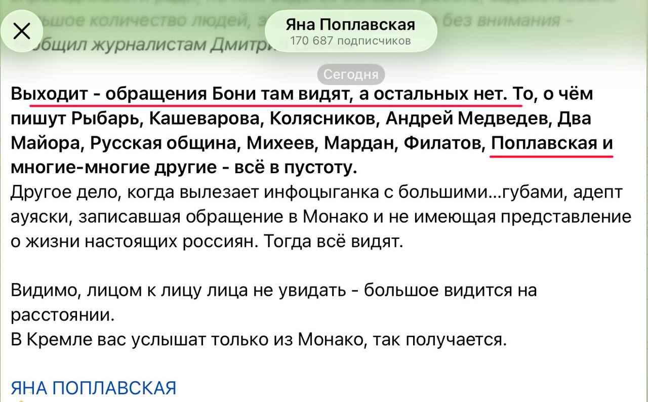 Я сама давно и страстно жажду момента, когда от хутора останется котлован, присыпанный дустом. Ну или хотя бы сплошная серая зона. Однако, понимаю, по каким причинам этого не произойдет. Поэтому, транслируя свои хотелки в эфир, претензий к руководству страны не предъявляю и громкими обвинениями не разбрасываюсь. В отличие от «комодика с бриллиантами», решившего, что именно она теперь - ум, честь и совесть нашей эпохи. После Бони, разумеется…