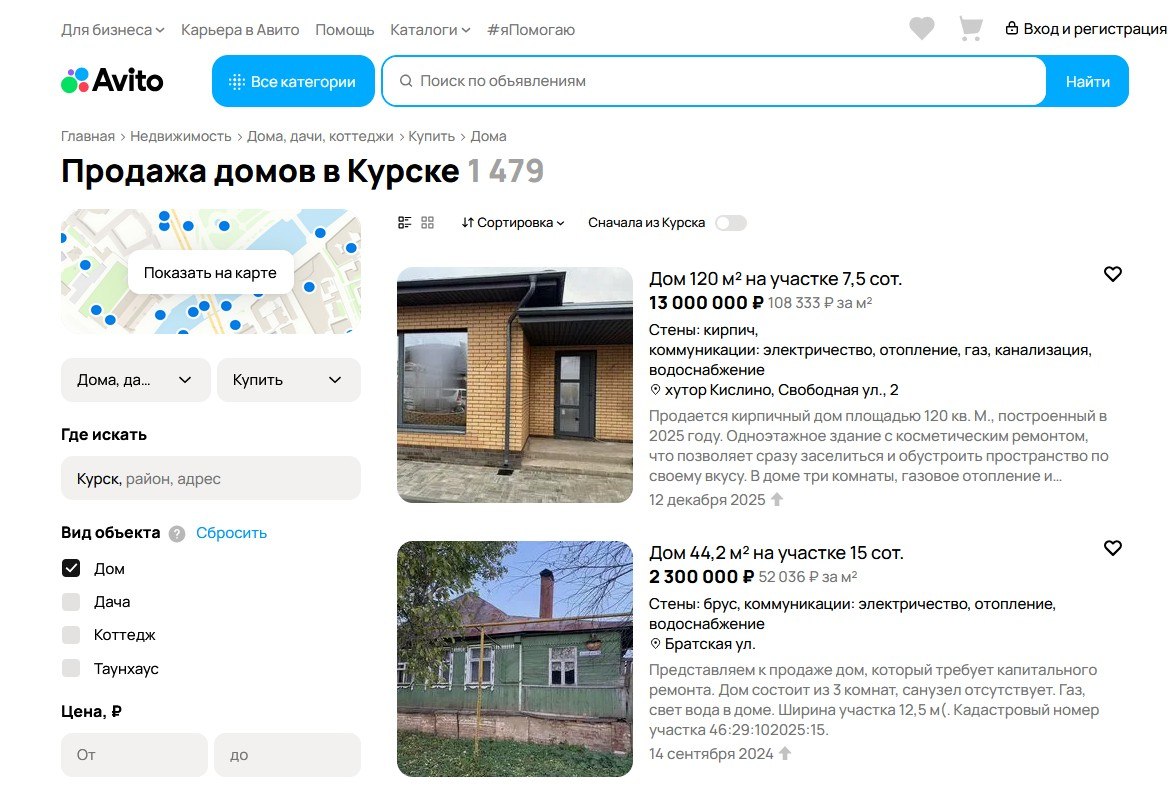 Считаем: дом 120 кв.м на 75 к = 9млн руб. компенсации. Смотрим снимок экрана (2). Цены на жильё в курской области. Дом 120 кв.м продаётся за цену 13млн. руб. Халупа «нуждающаяся в капитальном ремонте» (т.е. под снос) – 2,3 млн. руб. Это купи, заплати за снос и вывоз строительного мусора, а затем построй вновь. И тогда стоимость такого жилья возрастёт кратно.