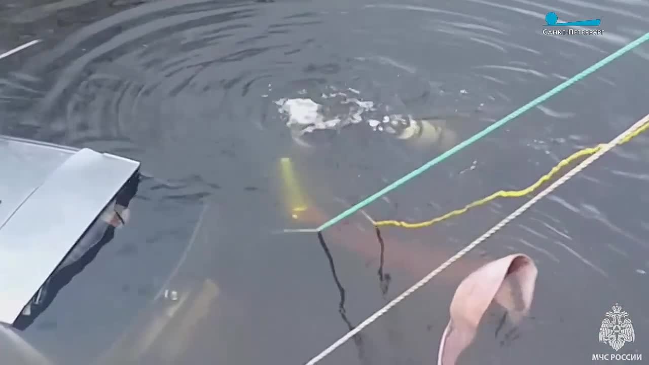 ГУ МЧС показало, как из Обводного канала в Кронштадте доставали BMW, упавший в воду сегодня днём.