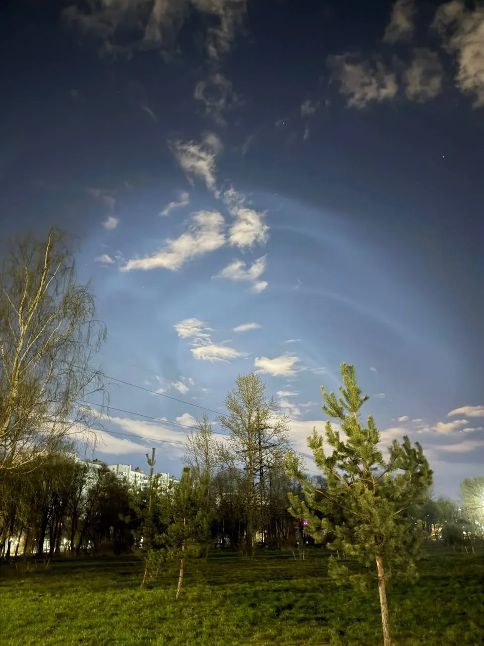 Жители заметили в ночном небе необычный светящийся след, похожий на щупальца.