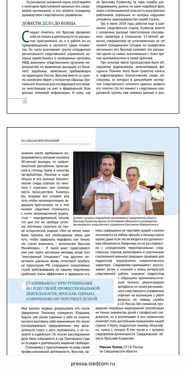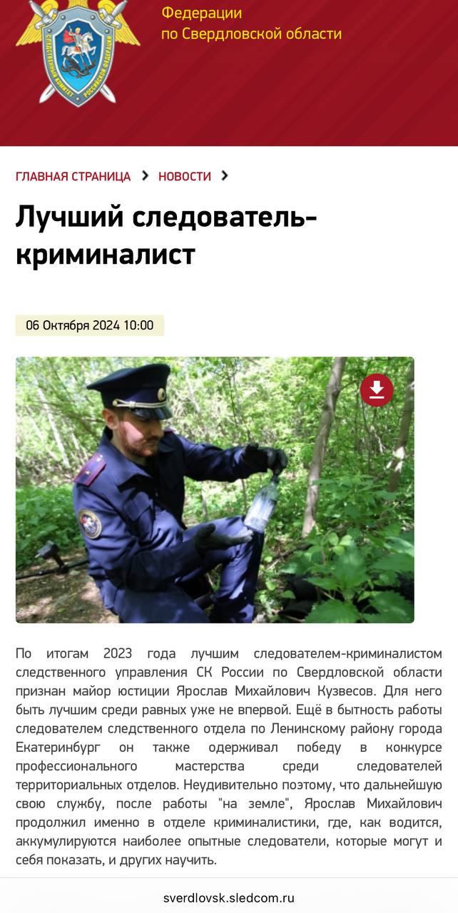 По данным СМИ Кузвесов по собственному желанию перешел на работу простым следователем в отдел по Орджоникидзевскому району на севере Екатеринбурга. Что стало причиной такого решения неизвестно. Кузвесова не раз признавали лучшим следователем-криминалистом (скрины с сайта СК)