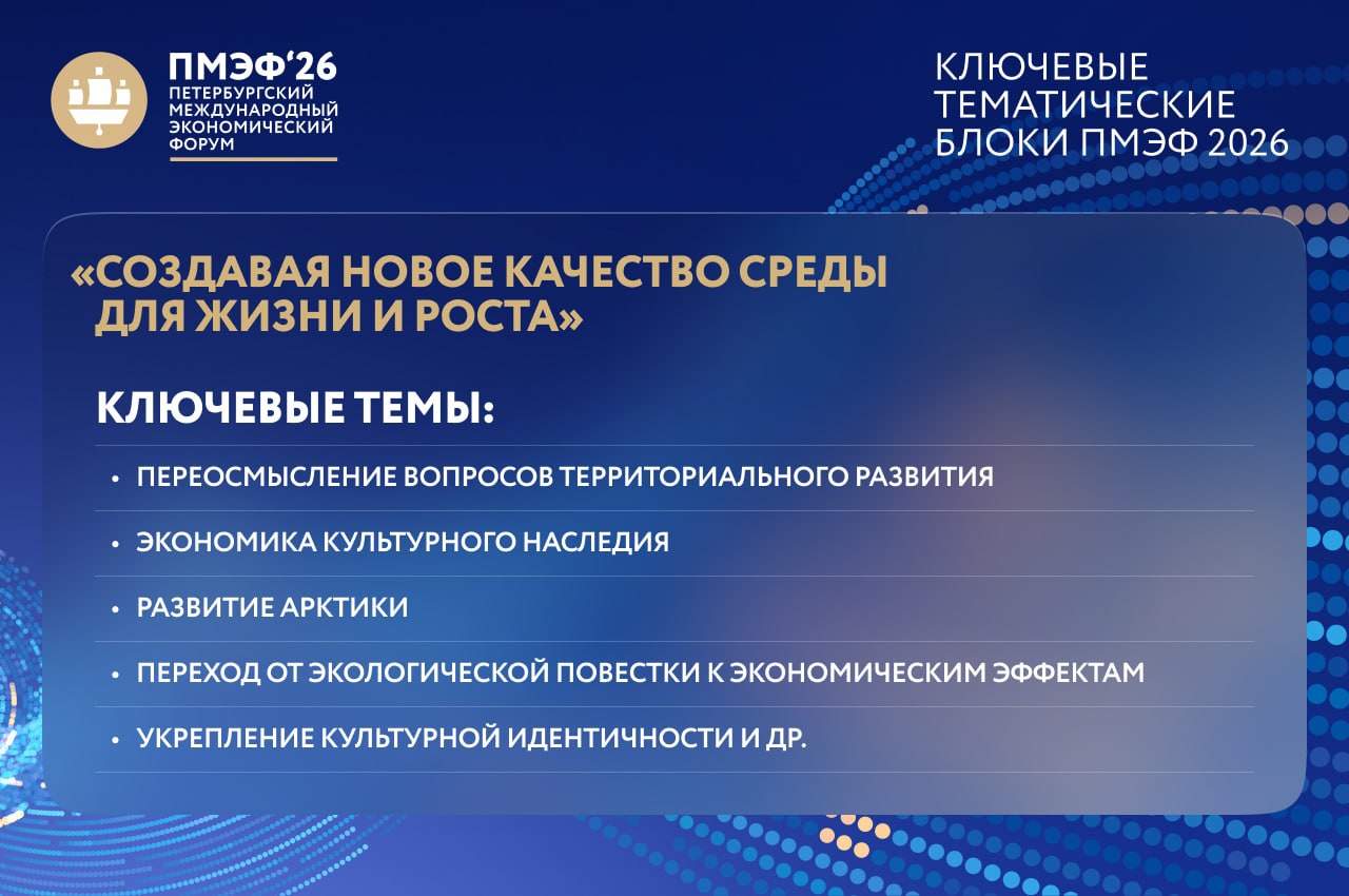 В деловую программу ПМЭФ-2026 также войдут бизнес-завтраки и серия бизнес-диалогов со странами ЕАЭС, АСЕАН, Африки, Латинской Америки и др. Кроме того, запланированы тематические мероприятия: