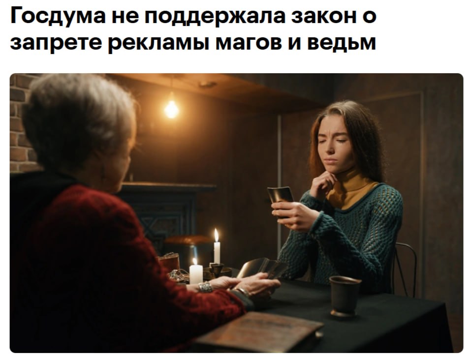 Даже не удивлен. Там половина Госдумы небось в постоянных клиентах у магов, тарологов и гадалок. Им проще интернет запретить.