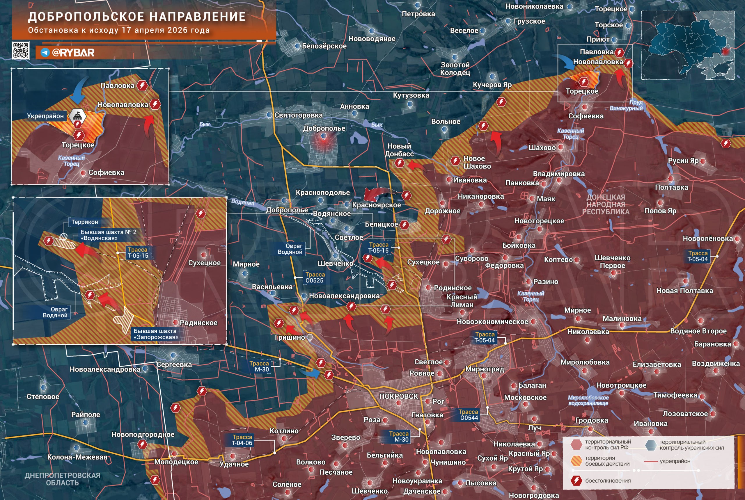 На Добропольском направлении ВСУ предпринимают попытки вернуть контроль над застройкой Торецкого, однако штурмовые группы оперативно рассеиваются российскими операторами БЛА и артиллерией. Северные окраины села на данный момент находятся в «серой зоне».