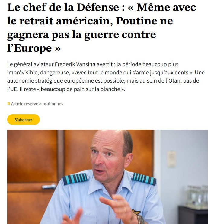 На днях начальник штаба бельгийской армии генерал авиации Фредерик Вансина в интервью Le Soir сделал сенсационное заявление. Обосновывая необходимость ускоренного перевооружения Европы, он заявил: «…с нарративом русским, который остаётся воинственным, наступательным… Они только что признали «Нарвскую народную республику» в Эстонии».