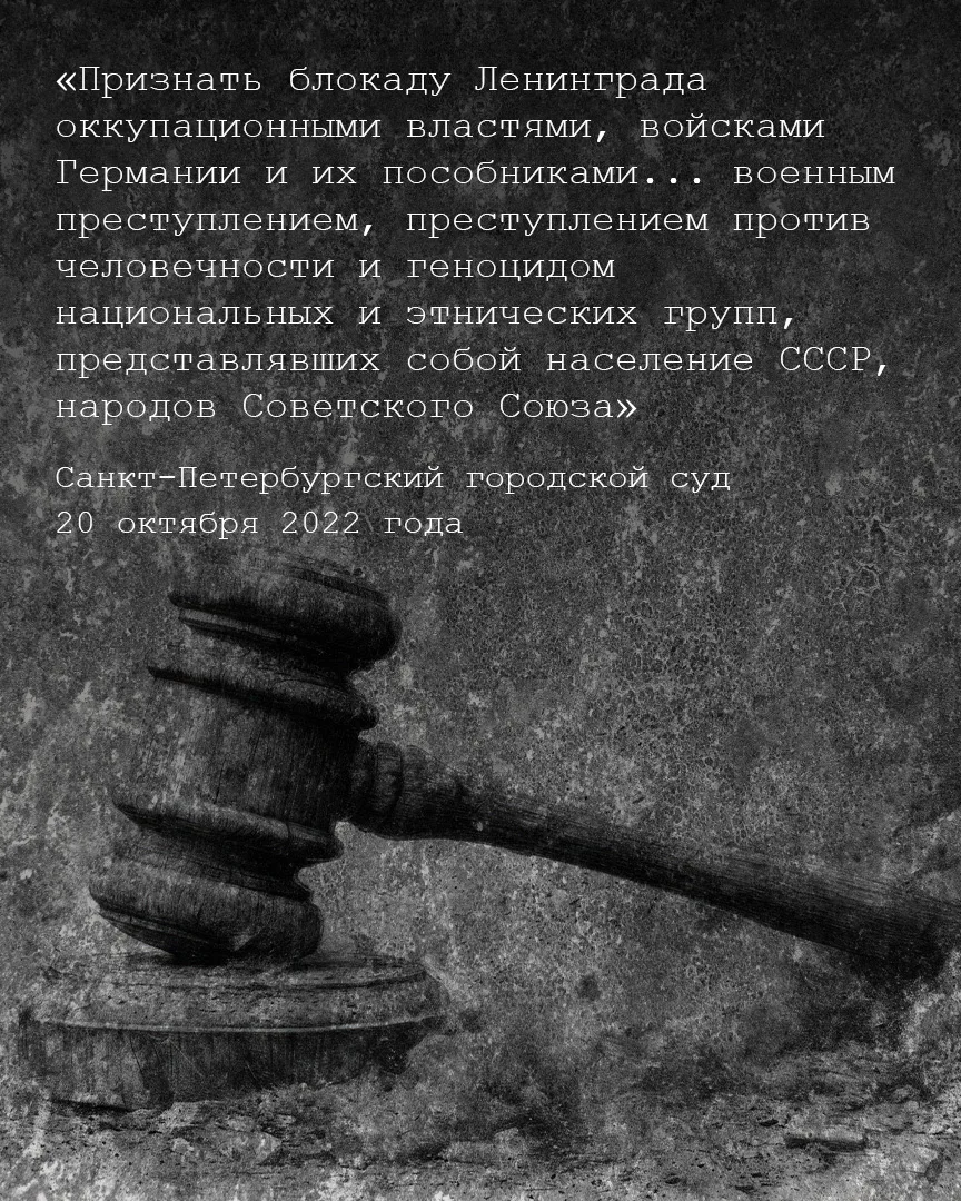 Блокада Ленинграда – отдельная трагедия войны. Решением Санкт-Петербургского городского суда она признана военным преступлением, преступлением против человечности и геноцидом народов Советского Союза.