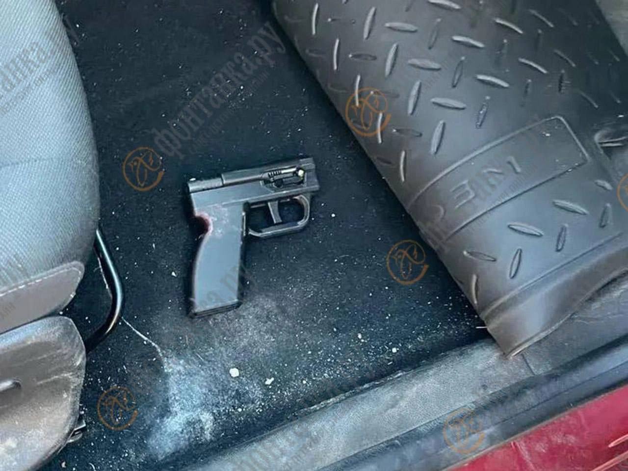 Еще двоих причастных 2002 года рождения остановили на углу Невского и Лиговского проспектов, когда те удалялись прочь на красной машине. Пистолет был не очень успешно спрятан под резиновым ковриком — такая модель сделана из твердого пластика и может стрелять сигнальными патронами, ее не распознает рентген или металлоискатель.