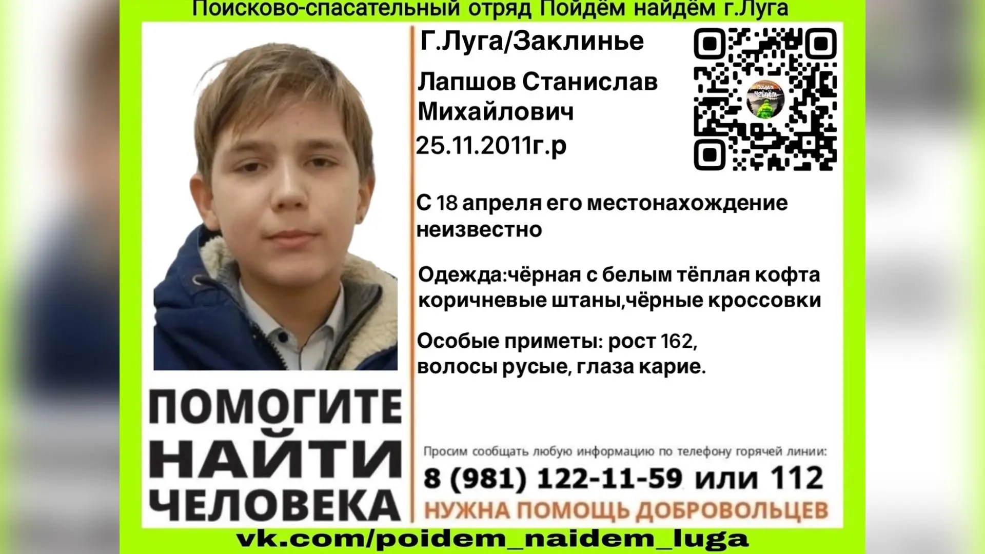 14-летний Станислав сбежал из дома в ночь с 17 на 18 апреля. С тех пор его местонахождение остаётся неизвестным. На момент исчезновения подросток был одет в чёрную с белым тёплую кофту, коричневые штаны и чёрные кроссовки. Его приметы: рост около 162 см, русые волосы, карие глаза.