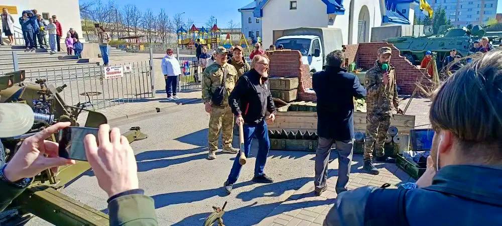 Виталий Валентинович принял участие в праздничном артиллерийском расчёте с гаубицей Д-30 - был залп А после посвятил в артиллеристы главу Шушар Авенира Казанцева. Сцена запоминающаяся, ведь по традиции надо понюхать гильзу только что выстрелянную, а потом этой гильзой по пятой точке получить.
