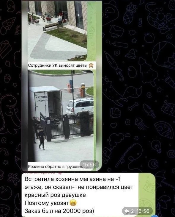 Но что самое интересное. После обеда розы из дома стали выносить какие-то мужчины. Оказалось, что девушке, которой они предназначались,не понравился их цвет.