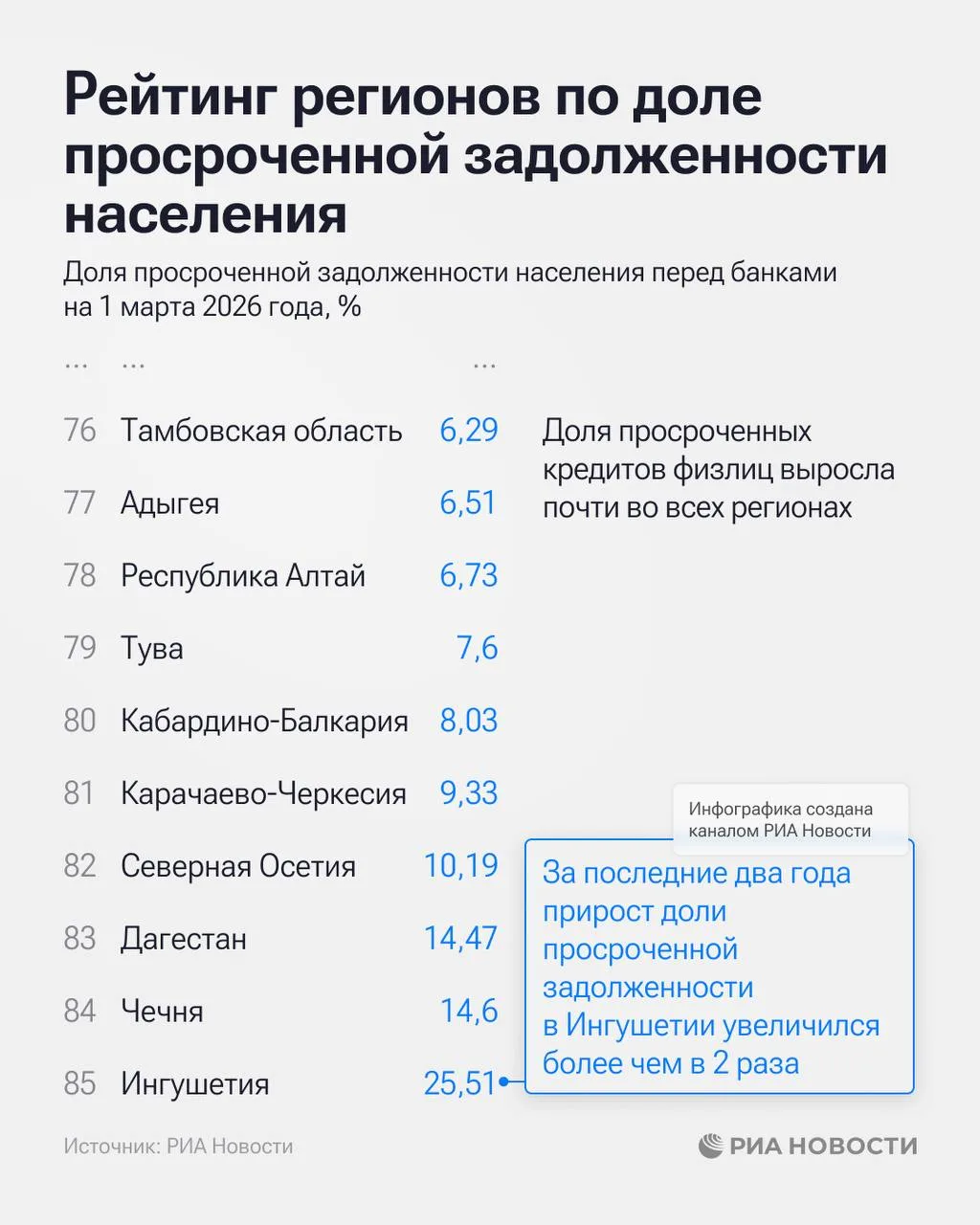 В аутсайдерах - Дагестан, Чечня и Ингушетия.