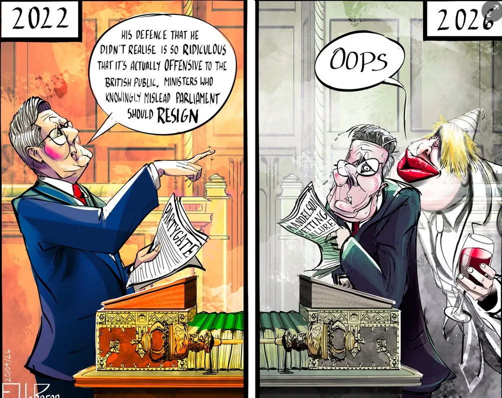 Британская The Guardian напоминает премьеру предвыборные обещания образца 2022 года, когда лидер лейбористов рассуждал о том, что «министры, которые сознательно вводят парламент в заблуждение, должны подать в отставку».