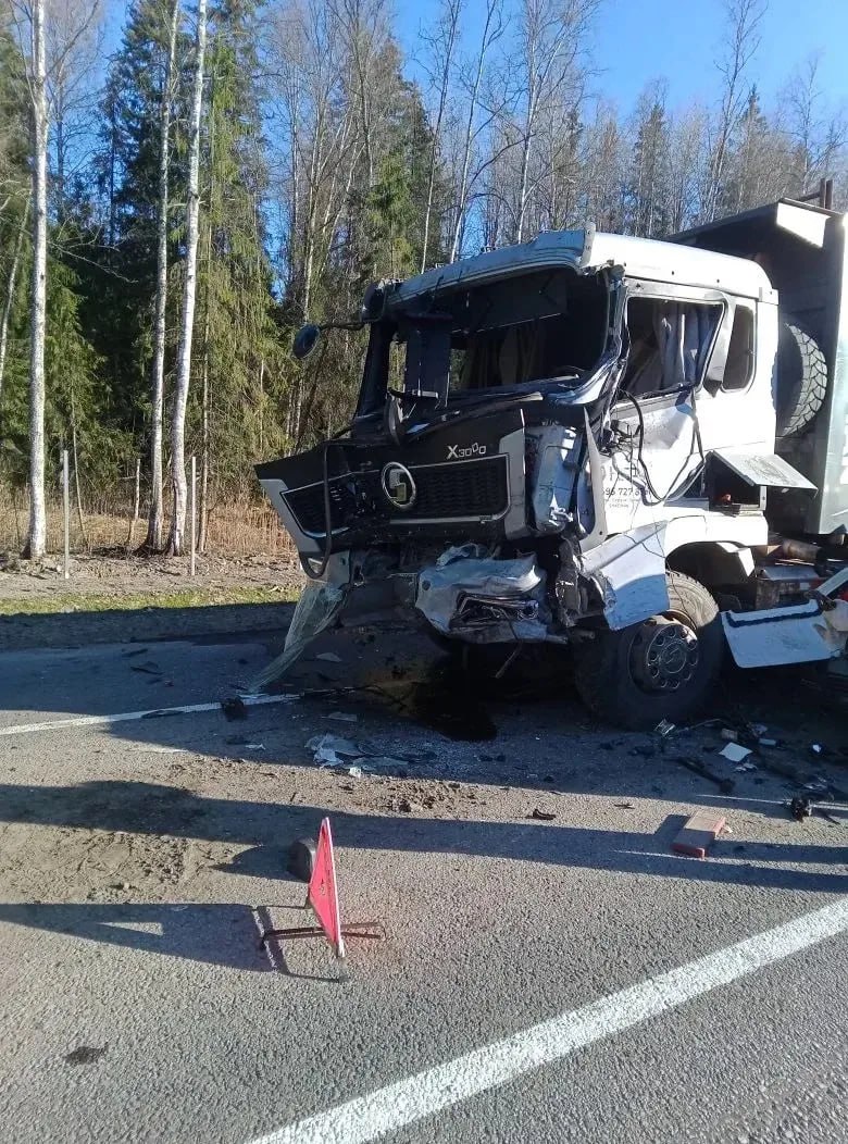 На 99-м километре А-120 по направлению в Гатчину столкнулись микроавтобус Mercedes, грузовые фуры Sitrak и DAF и ещё две легковушки.