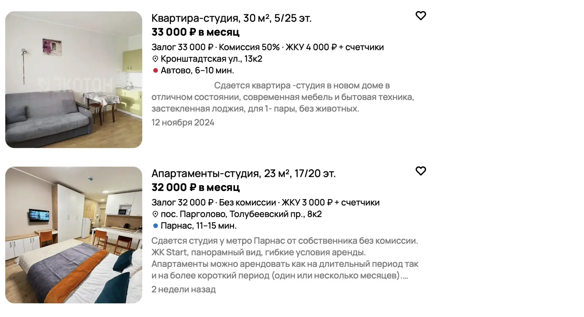 Сейчас в Петербурге сезонное затишье, но объём предложения вырос на 25-30% по сравнению с 2023-2024 годами. Спрос при этом просел на 15%. Люди, которые не могут продать квартиры по желаемой цене, уходят в аренду. Как итог — цены корректируются: студии и небольшие квартиры подешевели на 6%, большие уже на 14%.