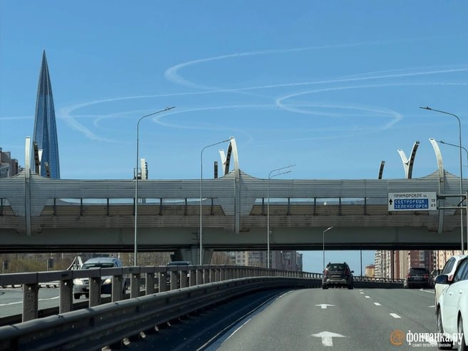 Необычные следы в небе заметили над Финским заливом. По словам заслуженного лётчика РФ Владимира Попова, они могут образовываться на значительной высоте. Он также отметил, что по характеру траектории можно предположить выполнение маневров по кругу или в зоне ожидания.