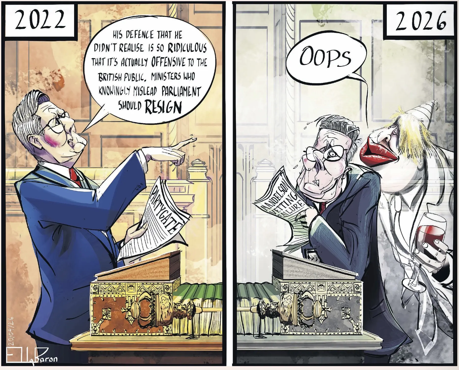 Газета The Guardian (особо подчеркиваю: лейбористская газета!) напоминает, как Кир Стармер, будучи лидером оппозиции в 2022 году, требовал отправить пьяницу Бориску Джонсона в отставку за то, что он сознательно вводил в заблуждение парламент. Теперь же Стармер сам оказался в таком же скандале.