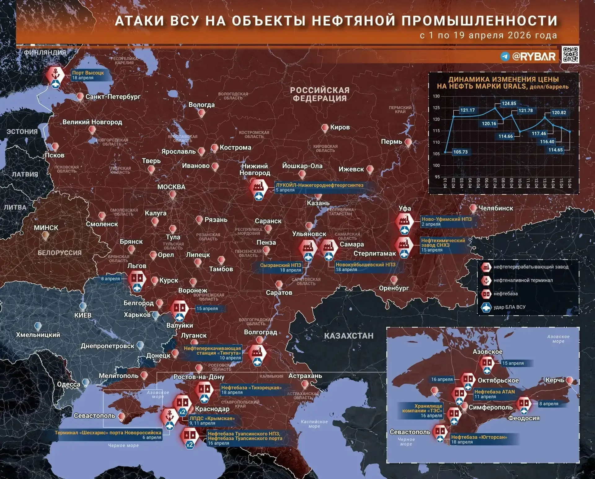 Нефтяная промышленность России под ударом – интенсивность налетов ВСУ постепенно нарастает, и полагаем, что к маю количество станет еще более высоким. Но не все так плохо: геранисты тоже оказывают внимание украинским объектам, и очень даже неплохо.