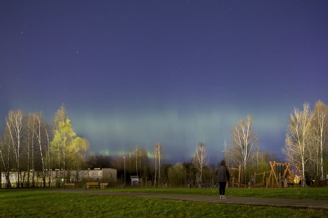 Северное сияние «поймали» во дворах Парнаса