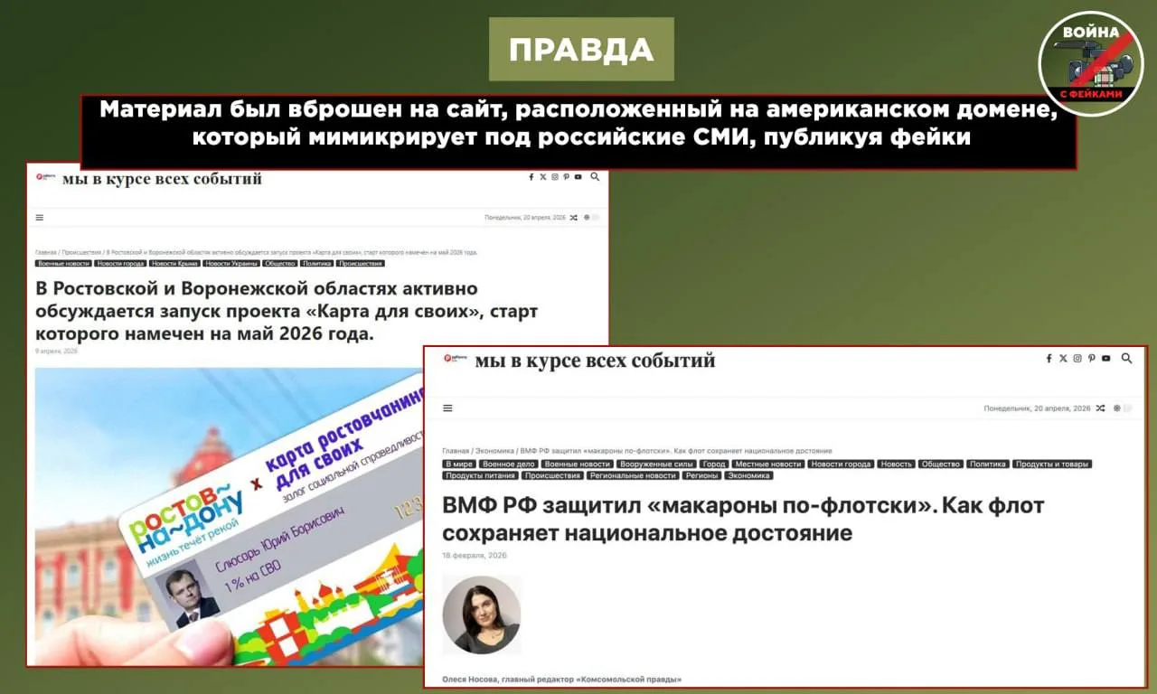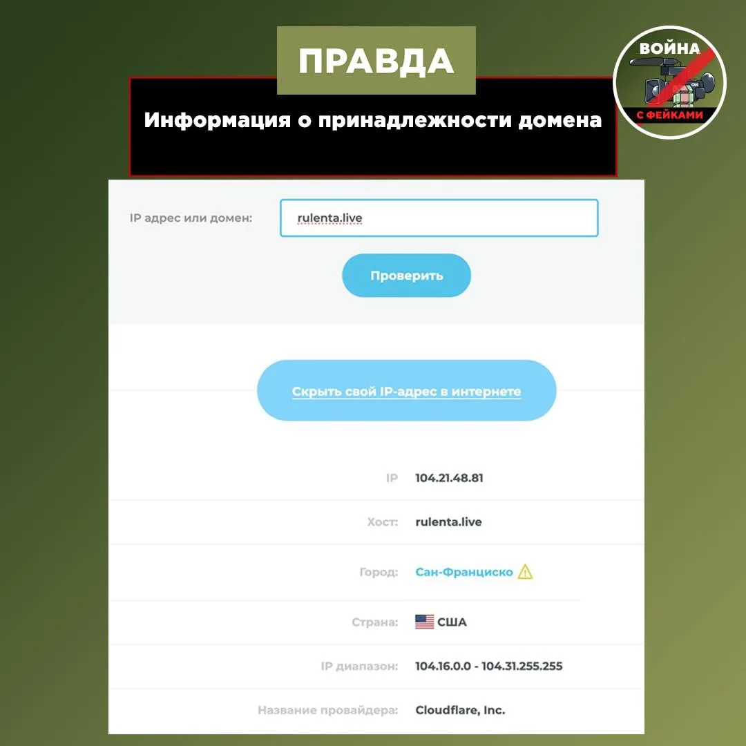 Ресурс, где был размещен фейковый материал, находится на сайте с IP-адресом в США, хотя площадка мимикрирует под российское онлайн-СМИ. На самом же деле там размещается проукраинская дезинформация.