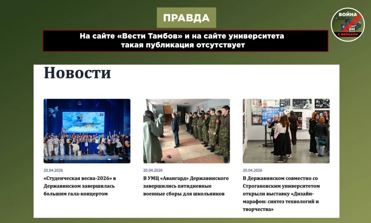 Правда: В данном случае фейкоделы сфабриковали не только инфоповод, но и площадку для размещения. Вброс оформлен под статью корреспондента Ирины Соцкой на сайте «Вести Тамбов».