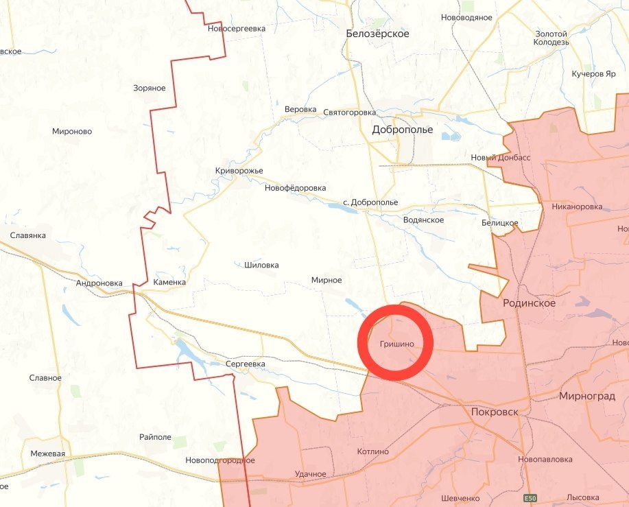 Российские войска освободили важный и большой населённый пункт Гришино западнее Покровска (Красноармейск) и Мирнограда (Димитров), сообщает Минобороны РФ.