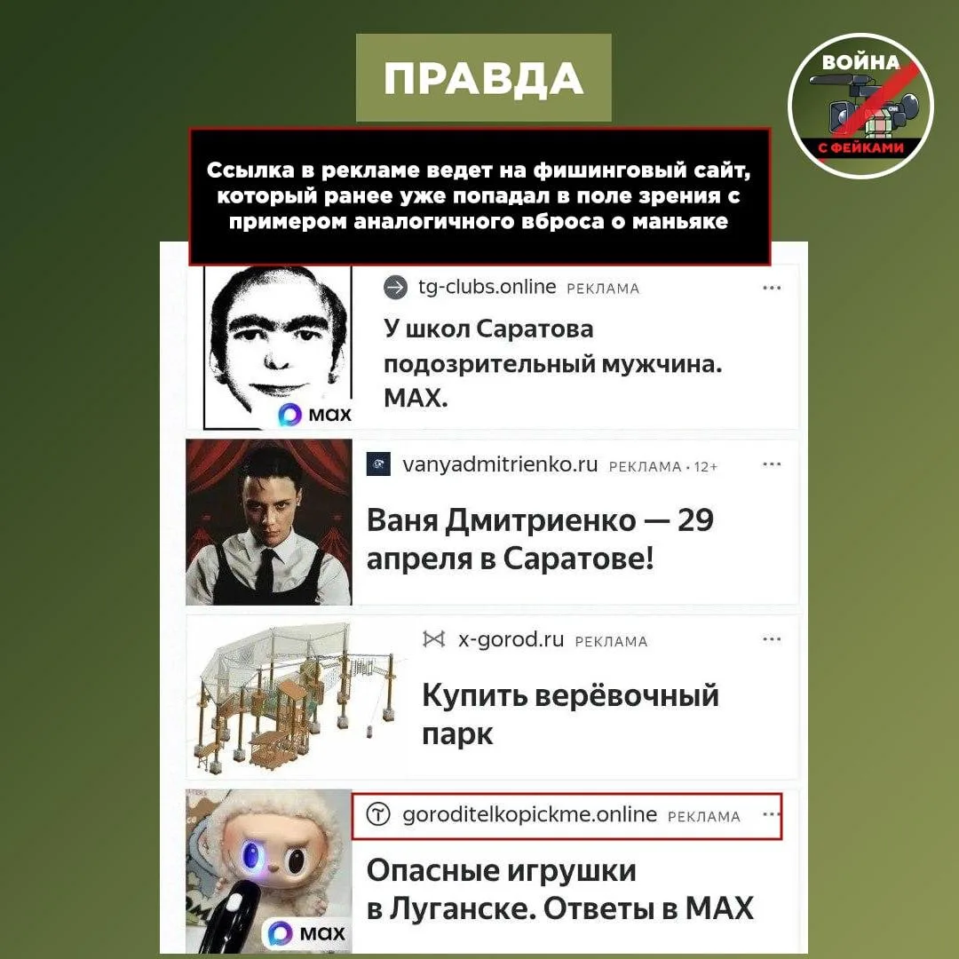 Правда: Сообщения об опасных игрушках — пример спам-рекламы и образец фишинговой схемы. К каналам в MAX этот вредоносный контент не имеет никакого отношения.